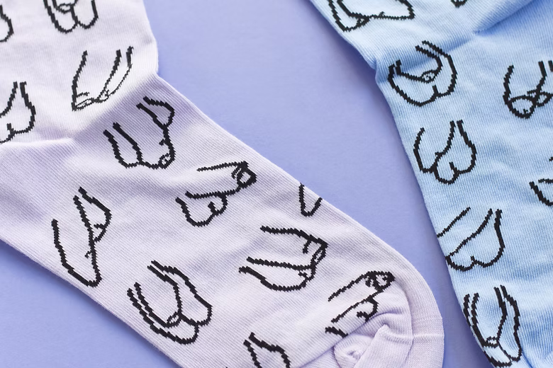 Eat Mielies – Mismatched willy socks: one sock lilac, one sock blue zijn een tikkeltje absurd, lekker kleurrijk en 100% uniek. Ze zitten comfortabel, blijven goed zitten en zorgen gegarandeerd voor reacties. Het perfecte cadeau voor iemand met humor, of gewoon voor je eigen voeten. Want sokken mogen ook lol maken.